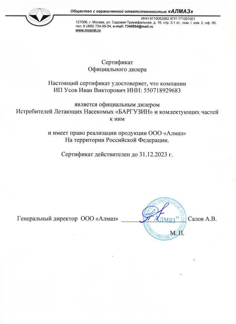 - Сертификат дилера