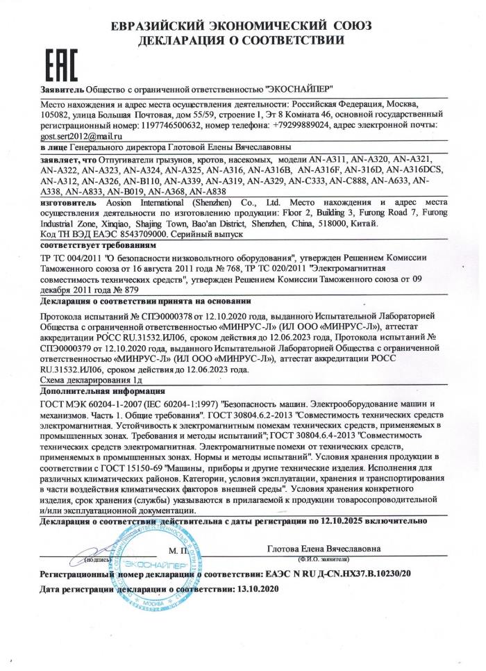 Электромагнитный отпугиватель тараканов «Экоснайпер AN-A322»