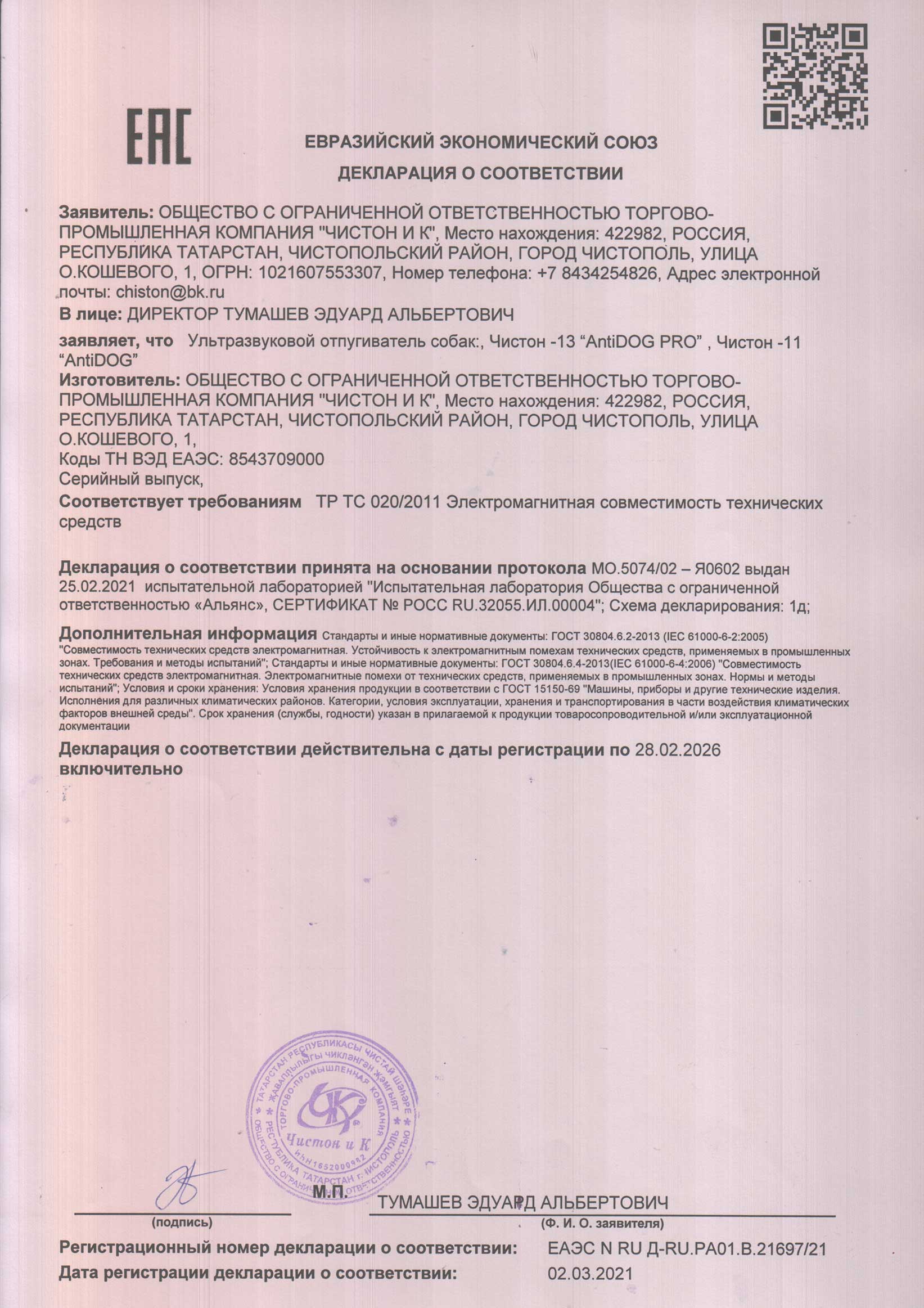 Ультразвуковой отпугиватель собак «Чистон-11 АнтиДОГ»